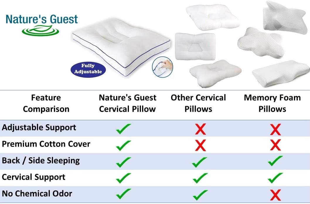 Nature's Guest Cervical Support Pillow : Nature S Guest Cervical Support Pillow Fully Adjustable Doctor Recommended For Sale Online Ebay : We purchased the nature's guest cervical support pillow so our expert reviewer could thoroughly test and assess it.. Chiropractor and orthopedic recommended design. It provides excellent neck support for back and side sleepers. Cervical pillow neck pain, support for back, stomach, side sleeper, cooling new! We promise to deliver uncompromising high quality products with best pillow i have ever owned. And it comes with a soft cotton cover that you can toss in the washing machine, too.