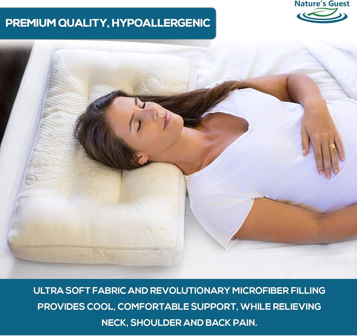 Nature's guest cervical support pillow — headache relief. Cervical support pillows are used when a cervical hypolordo. Natures guest cervical support pillow. Icool technology keeps the pillow cool. The cervical indentations in this pillow offers neck support for side sleepers and back sleepers.